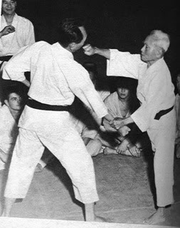 Que el Karate-do   ocupe hoy un lugar como deporte reconocido internacionalmente, se debe   sobre todo al esfuerzo de mis maestros, mis compañeros de práctica, mis   amigos y discípulos, que dedicaron tiempo y esfuerzo sin límites a la   tarea de conseguir que este arte de autodefensa alcanzara su actual   estado de perfección. Creo que mi papel ha sido el de simple   introductor, un maestro de ceremonias, por así decirlo, alguien que tuvo   la suerte de aparecer en el momento y lugar oportuno. »